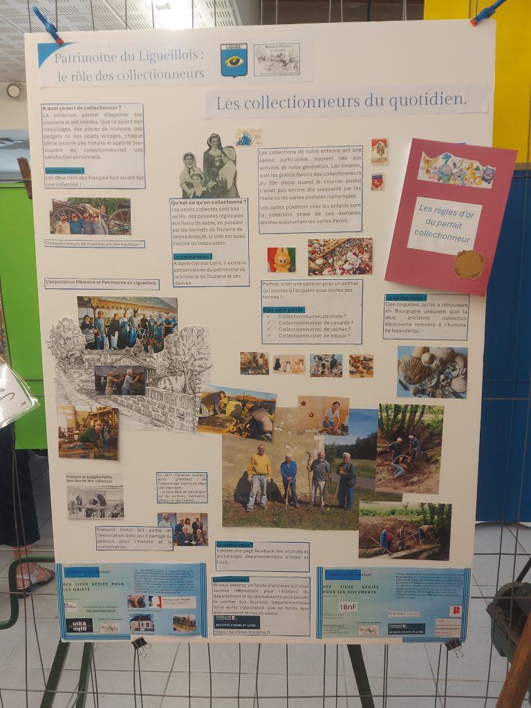 La préservation de ces collections revêt une importance particulière, car elles permettent de transmettre un patrimoine culturel aux générations futures. Pour sauvegarder ces précieuses collections, il est essentiel de les collecter et d’adopter des méthodes de conservation appropriées car ces collections contribuent à enrichir le tissu social de Ligueil, en tissant des liens entre les habitants autour d’un intérêt commun : préserver la mémoire et le patrimoine Ligueillois.
